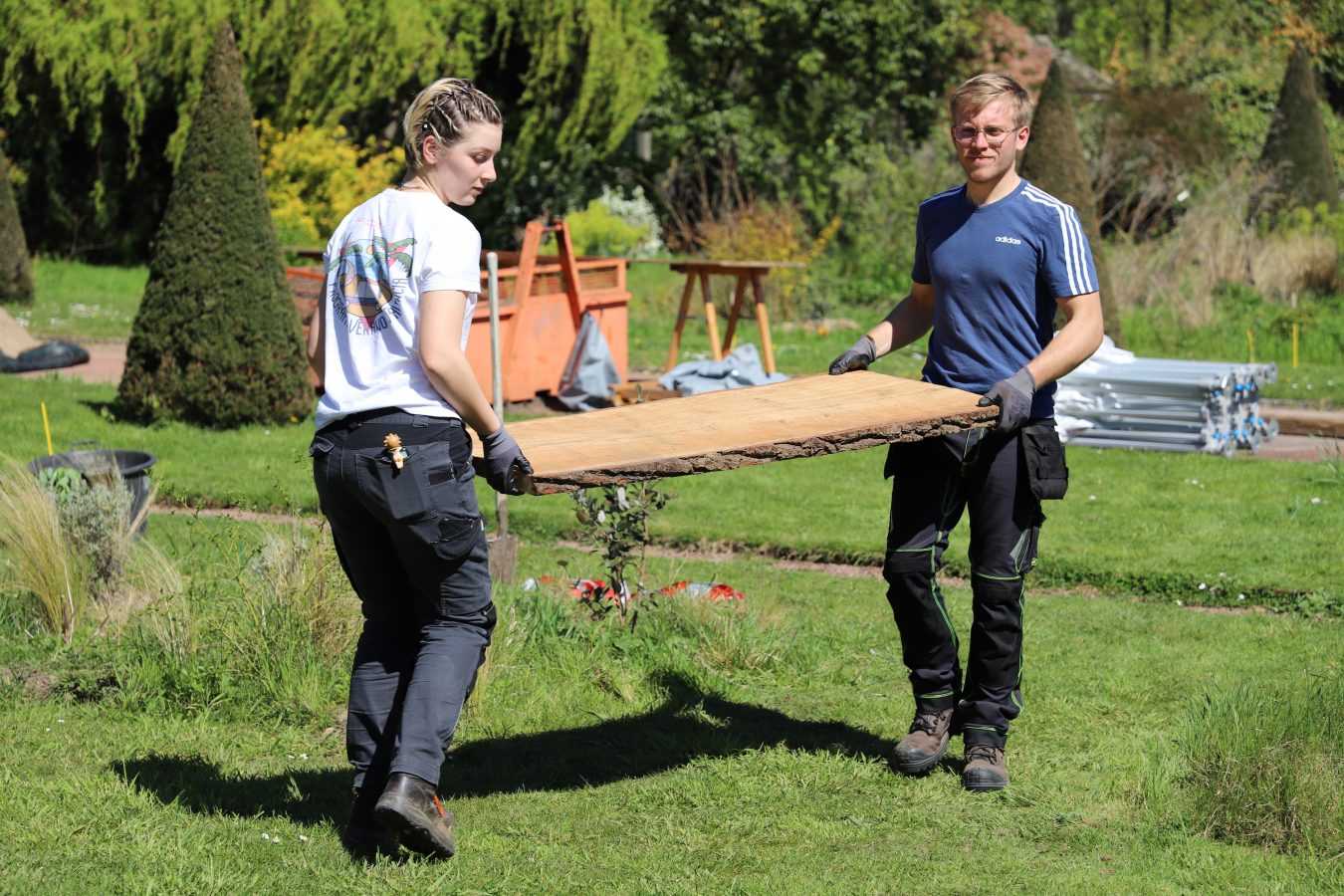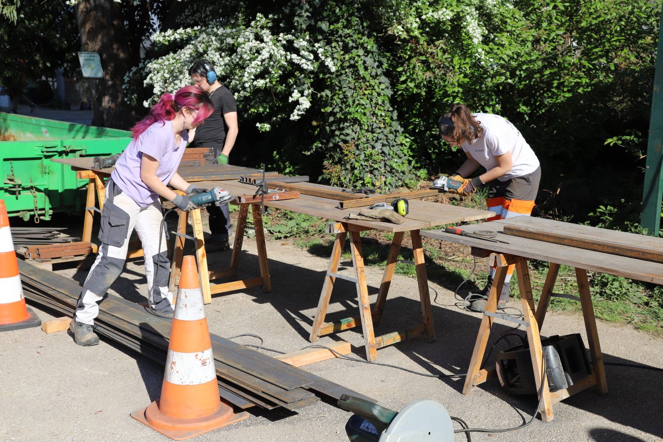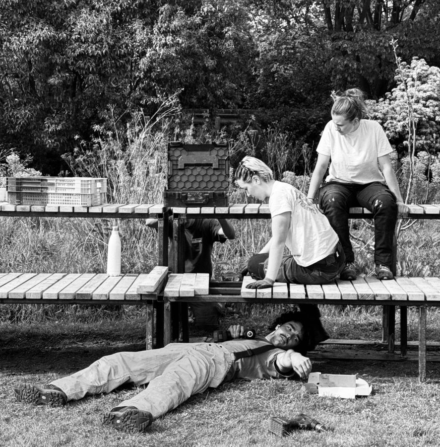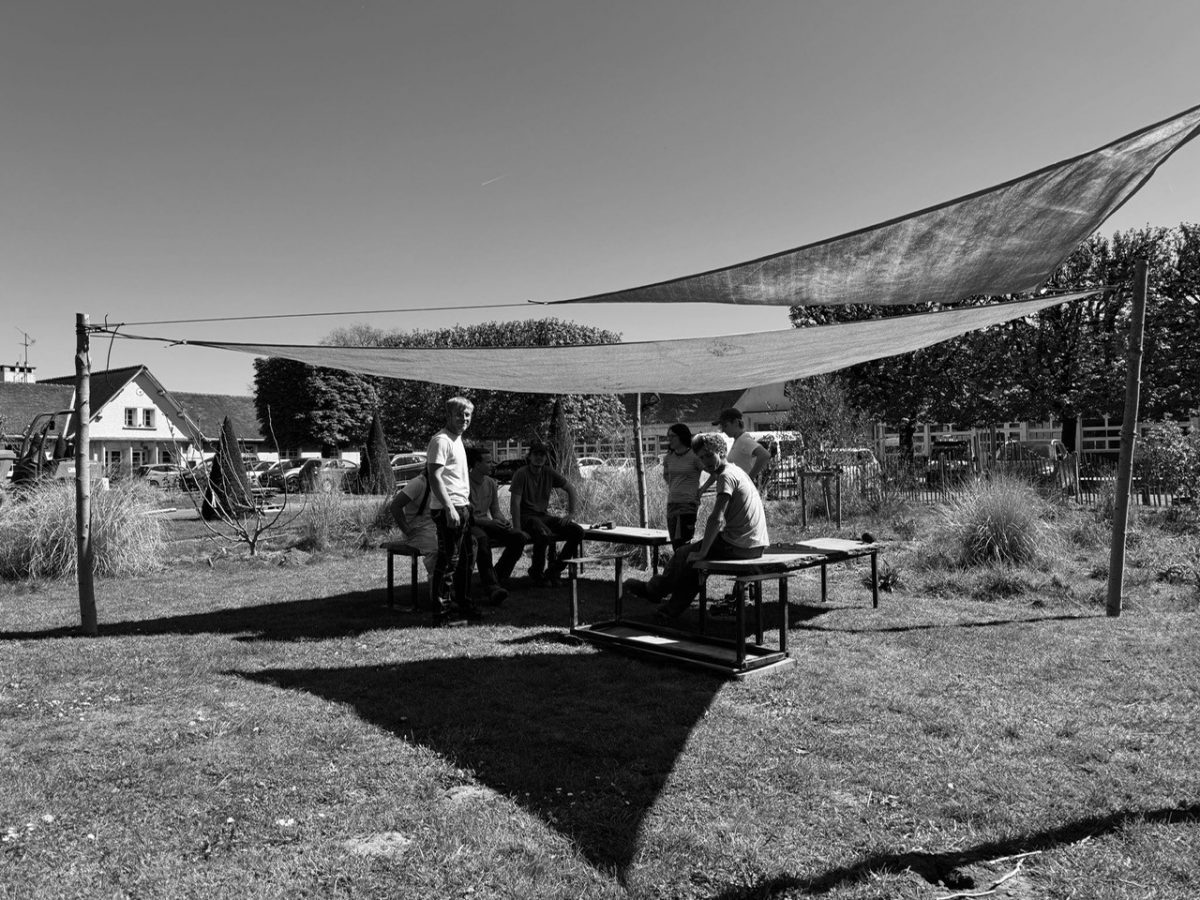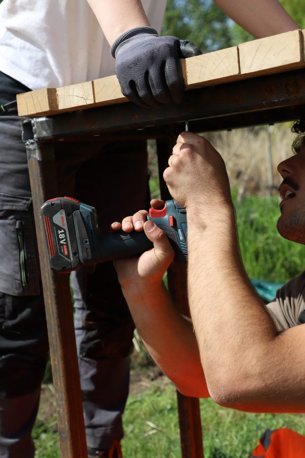 Chacun·e a contribué : plantations, soudure, mobilier, entretien, conception.