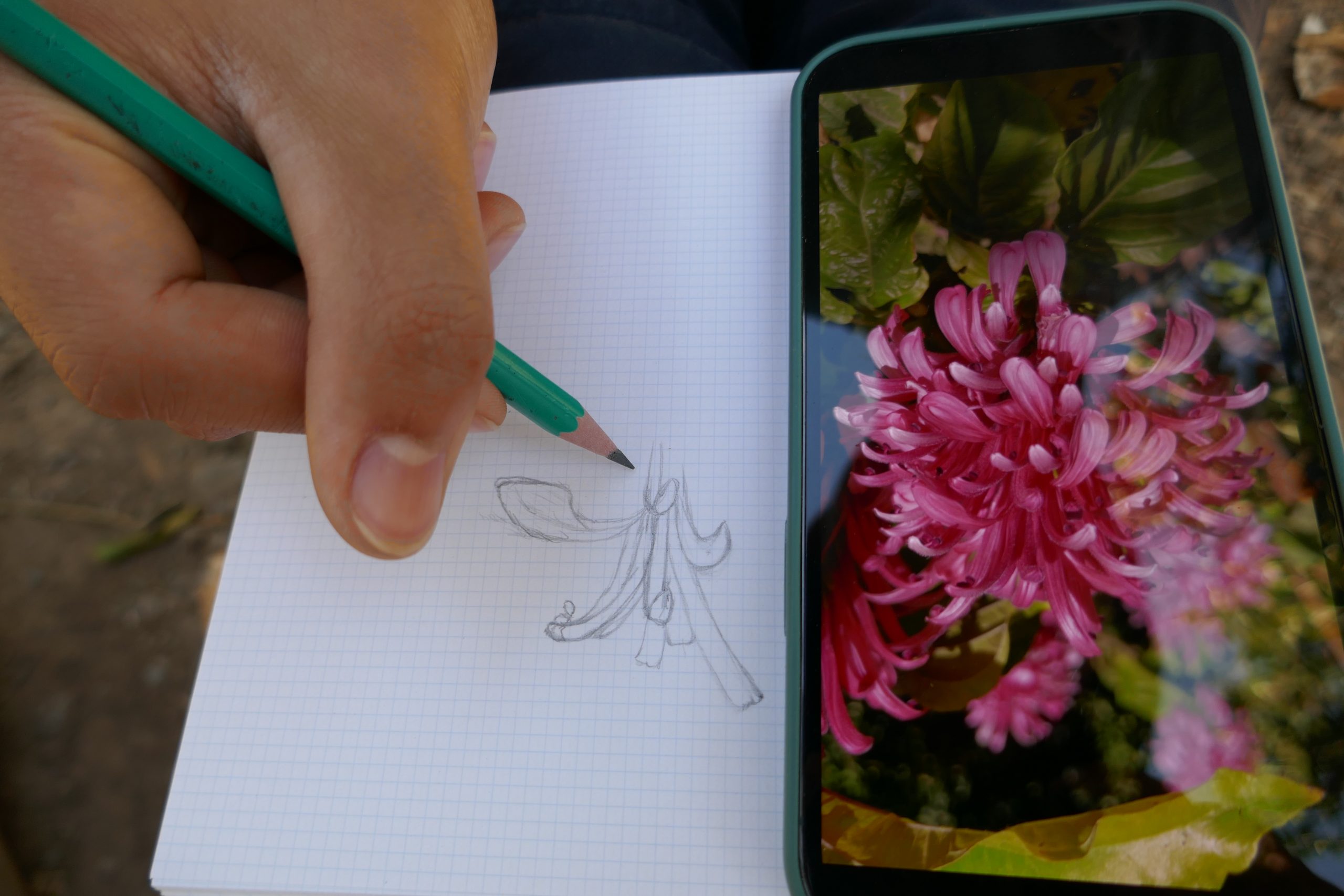 Dans ces 2 lieux, les élèves ont pris le temps de se poser pour observer et dessiner les végétaux et leur mise en scène. Nos coups de cœur horticoles lors de ces visites furent : Bauhinia variegata, Phoenix theophrasti, Jasminum laurifolium et Plumeria rubra.