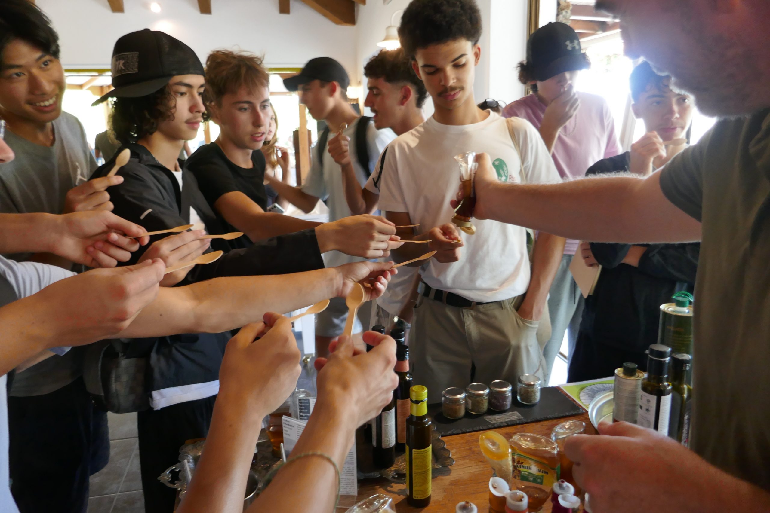 La culture d’oliviers est très présente dans ce paysage « baigné » par le soleil : nous avons eu l’occasion de visiter une oliveraie « bio », et de déguster l’huile directement chez le producteur.