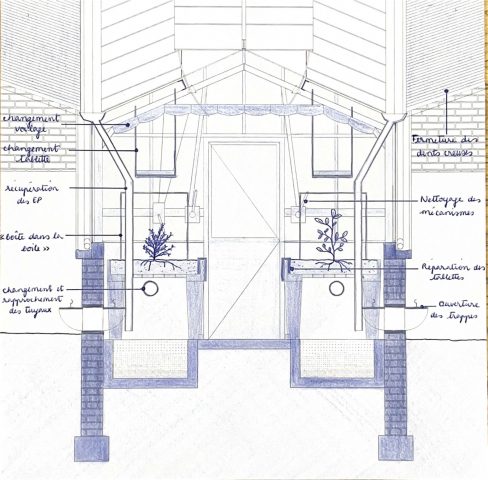 Au programme : l’approfondissement des scénarios autour de l’intégration des systèmes de chauffage, de la réutilisation des matériaux et de l’accessibilité des serres avant les arbitrages. Merci à l’École d’architecture de la ville & des territoires Paris-Est et à Jean Souviron pour ce partenariat très opérationnel.