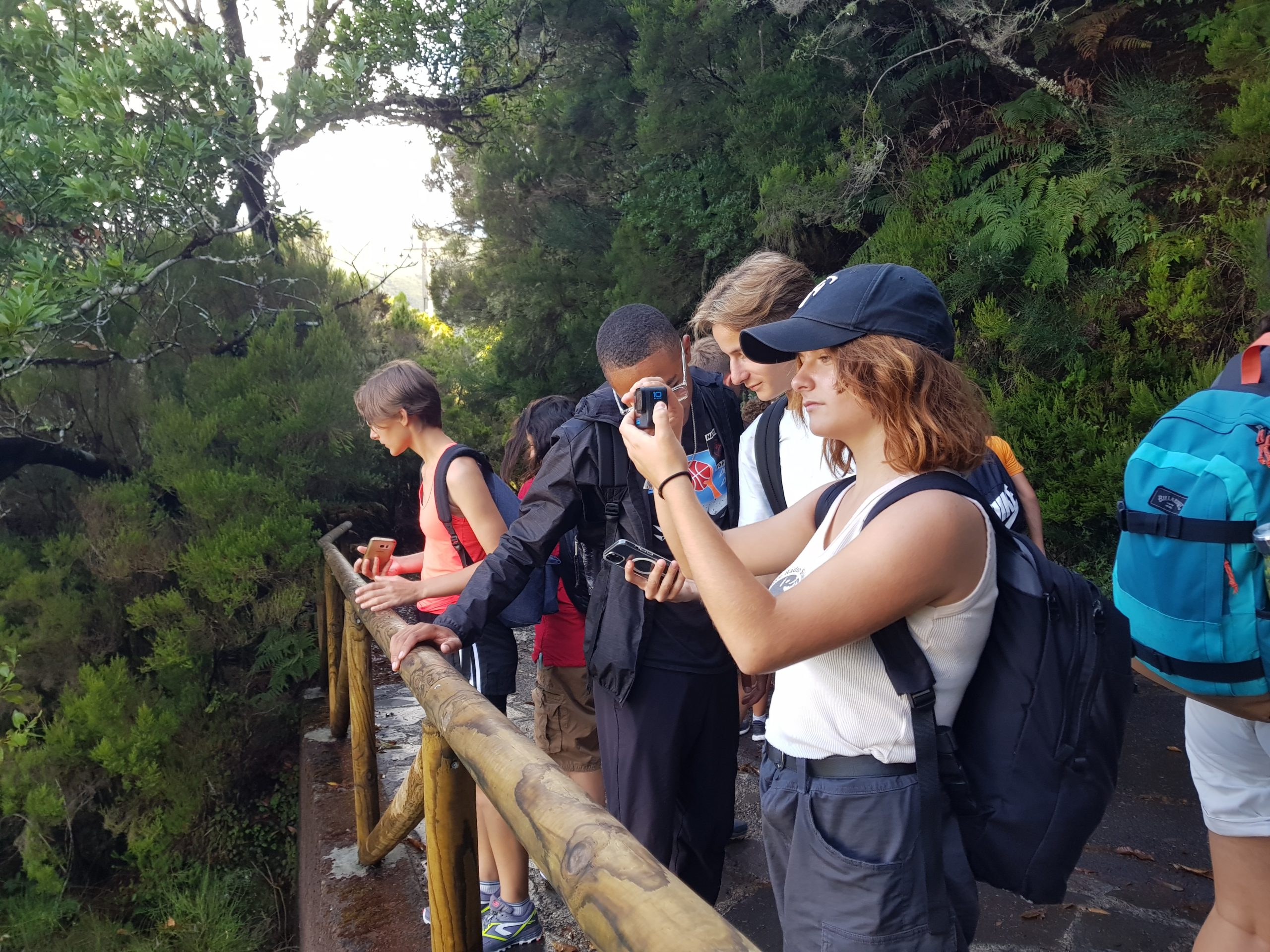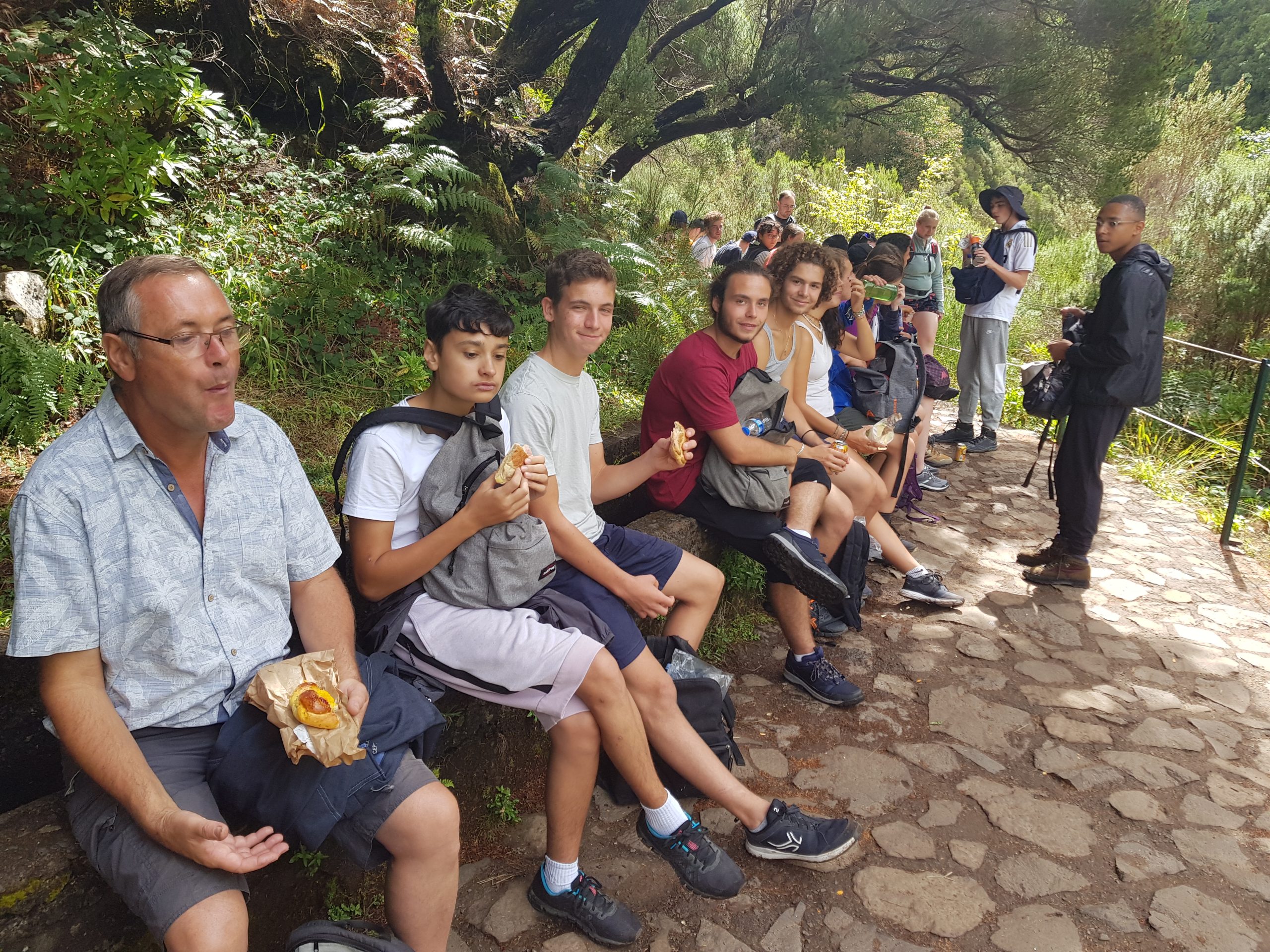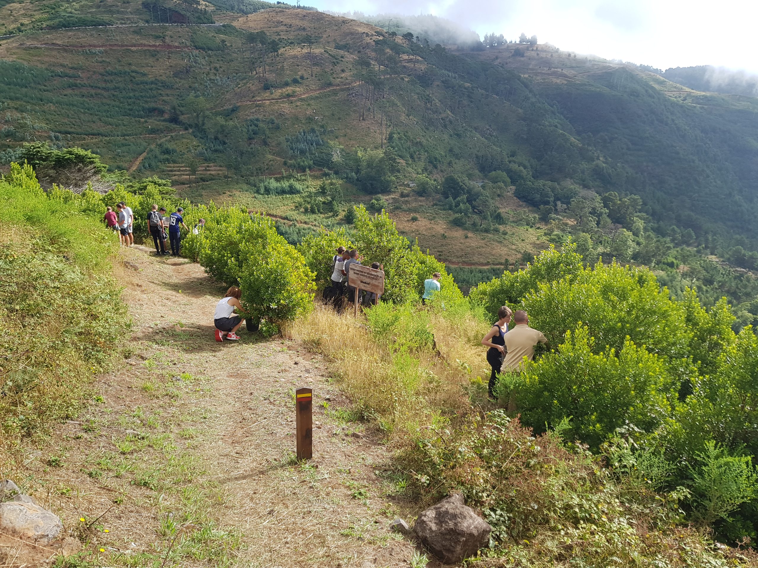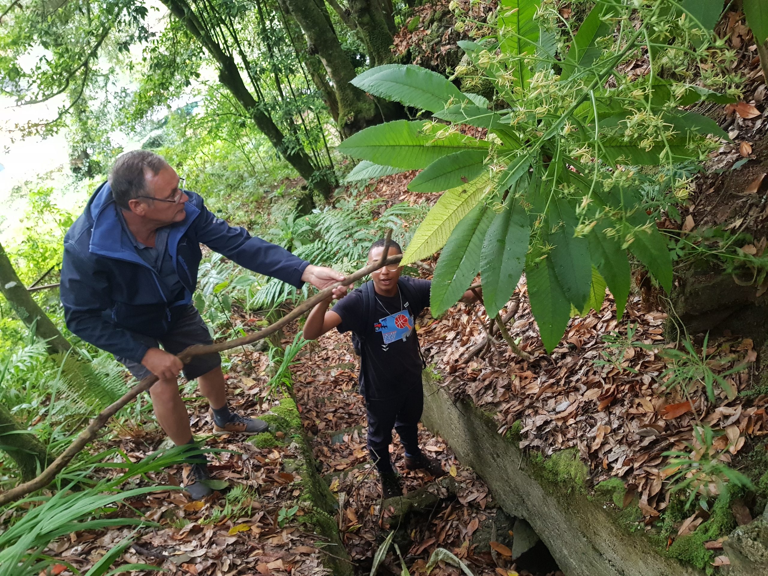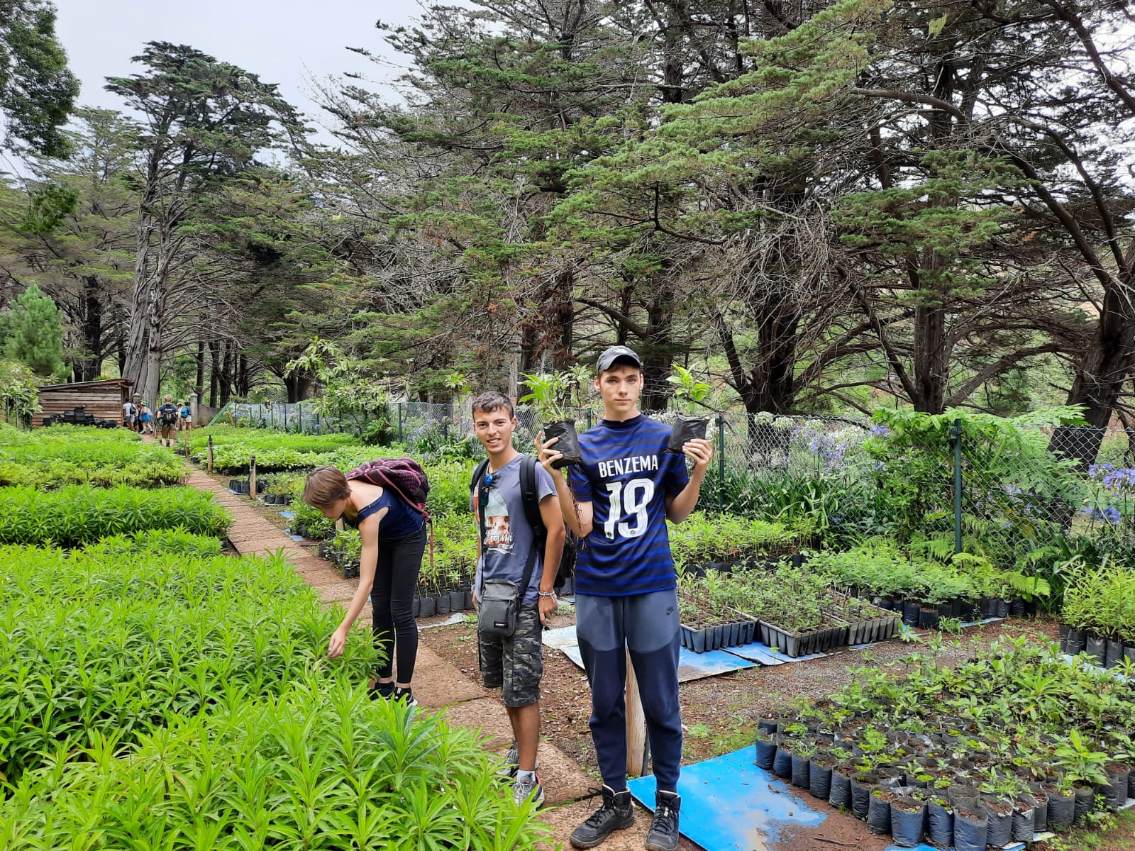Route vers le parc écologique de Funchal dont le but consiste à promouvoir la réintroduction dans le milieu naturel d’espèces endémiques afin de contrecarrer le développement de plantes invasives (eucalyptus, mimosa, genêt) ayant pu proliférer suite aux récents incendies. Dans une volonté de compensation du bilan carbone de notre voyage, nous avons participé à la mission du parc en récoltant des graines (Morella faya) qui seront cultivées dans la pépinière afin de produire les arbustes ensuite plantés dans le milieu naturel. Nous avons également participé au rempotage de jeunes plants. L’après-midi a été consacrée à la visite des jardins du Palheiro, propriété de la famille Blandy, rassemblant des spécimens remarquables originaires du monde entier (Amérique, Nouvelle Zélande, Australie, Népal, etc). Une belle découverte en raison de la rareté et du développement des espèces présentées.