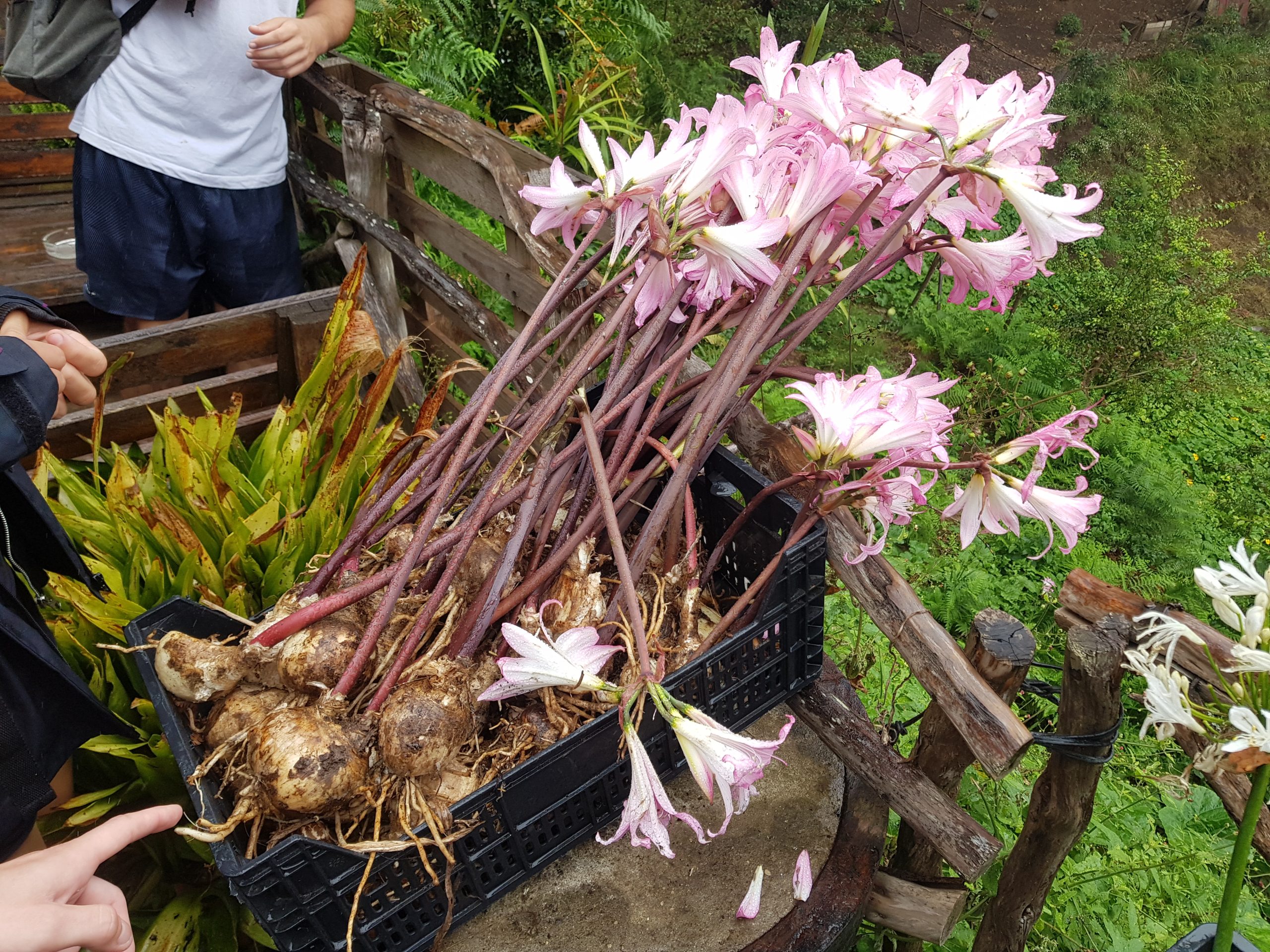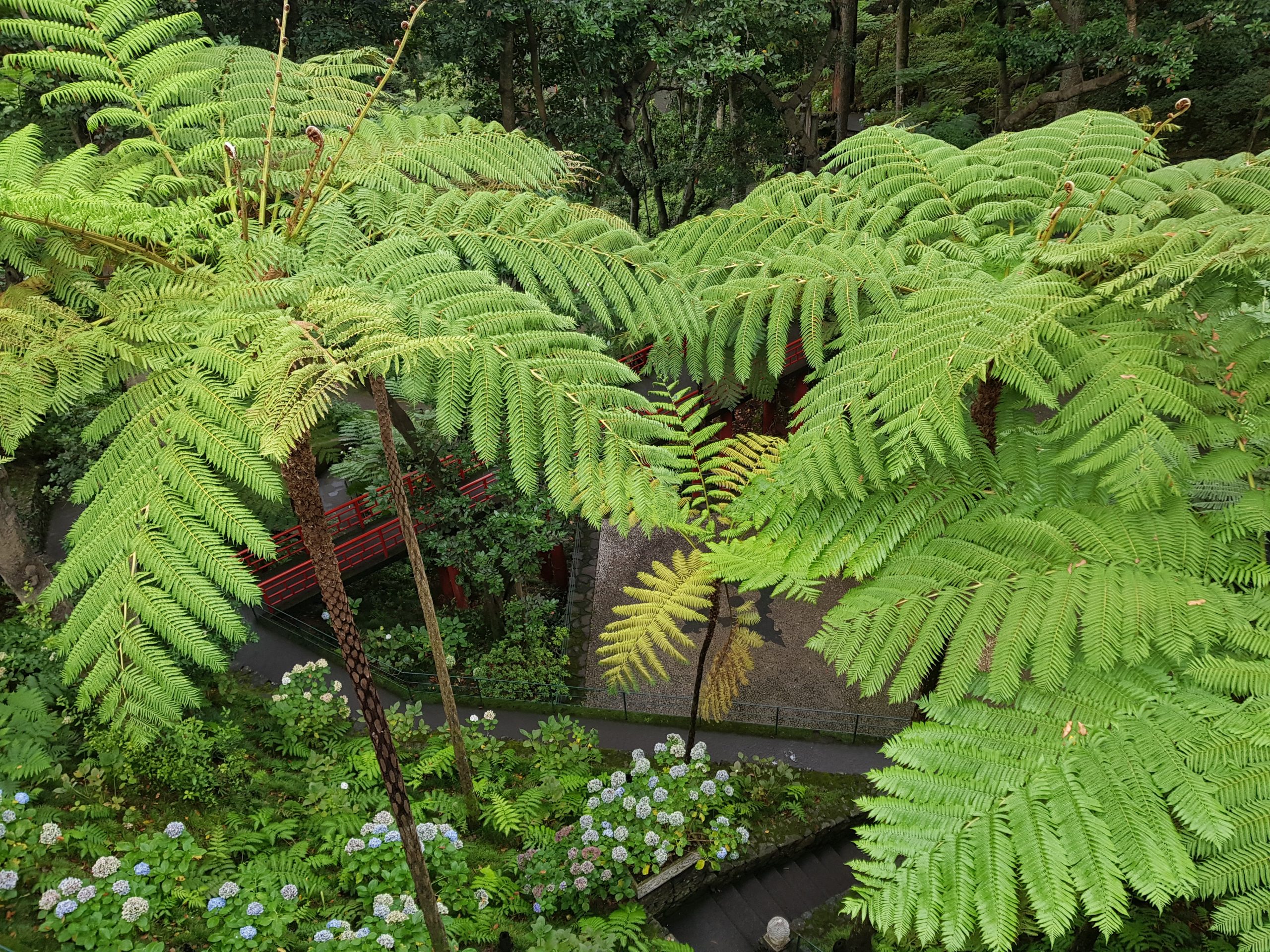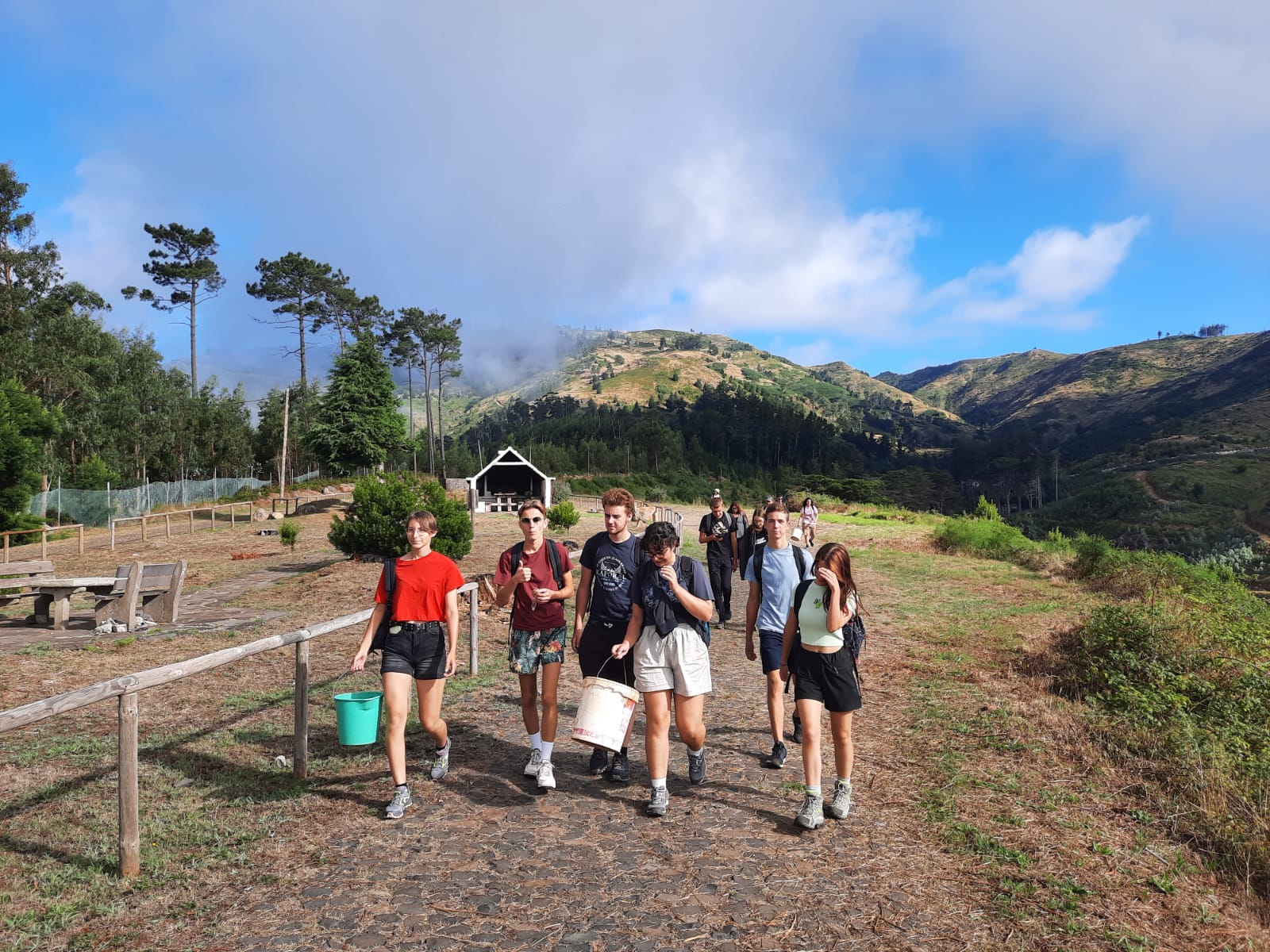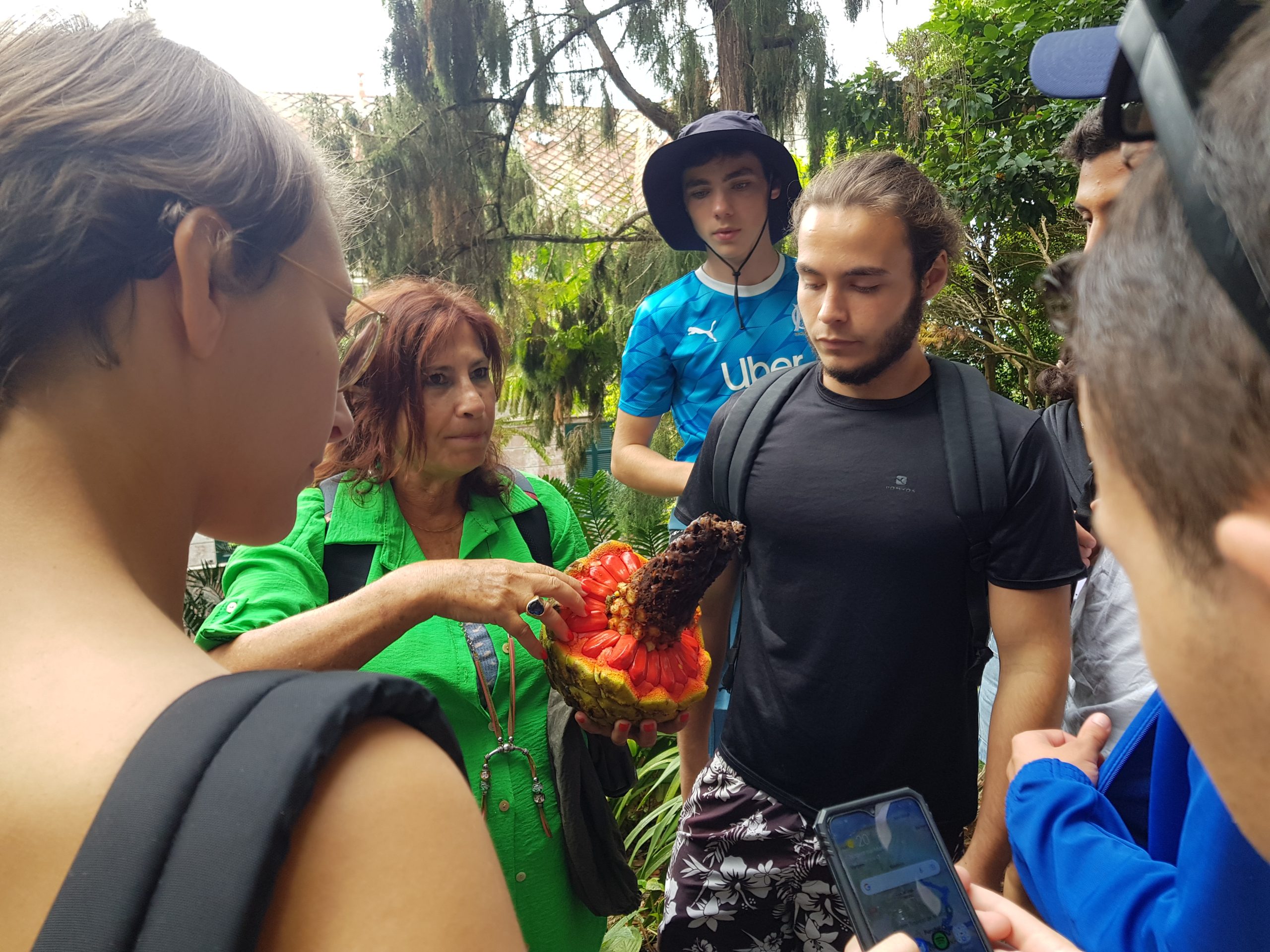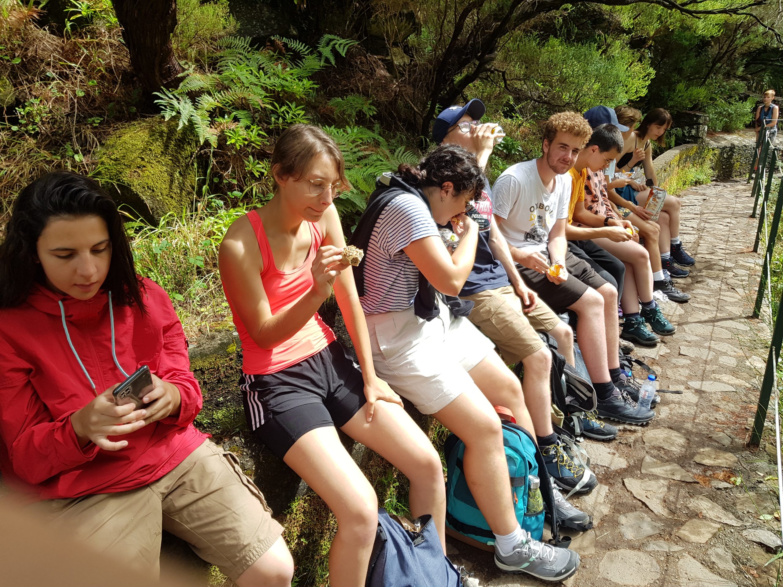 Route vers le parc écologique de Funchal dont le but consiste à promouvoir la réintroduction dans le milieu naturel d’espèces endémiques afin de contrecarrer le développement de plantes invasives (eucalyptus, mimosa, genêt) ayant pu proliférer suite aux récents incendies. Dans une volonté de compensation du bilan carbone de notre voyage, nous avons participé à la mission du parc en récoltant des graines (Morella faya) qui seront cultivées dans la pépinière afin de produire les arbustes ensuite plantés dans le milieu naturel. Nous avons également participé au rempotage de jeunes plants. L’après-midi a été consacrée à la visite des jardins du Palheiro, propriété de la famille Blandy, rassemblant des spécimens remarquables originaires du monde entier (Amérique, Nouvelle Zélande, Australie, Népal, etc). Une belle découverte en raison de la rareté et du développement des espèces présentées.