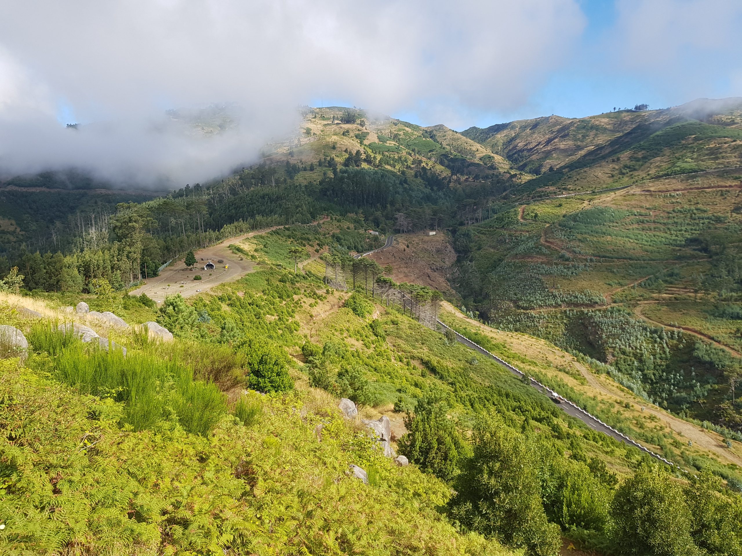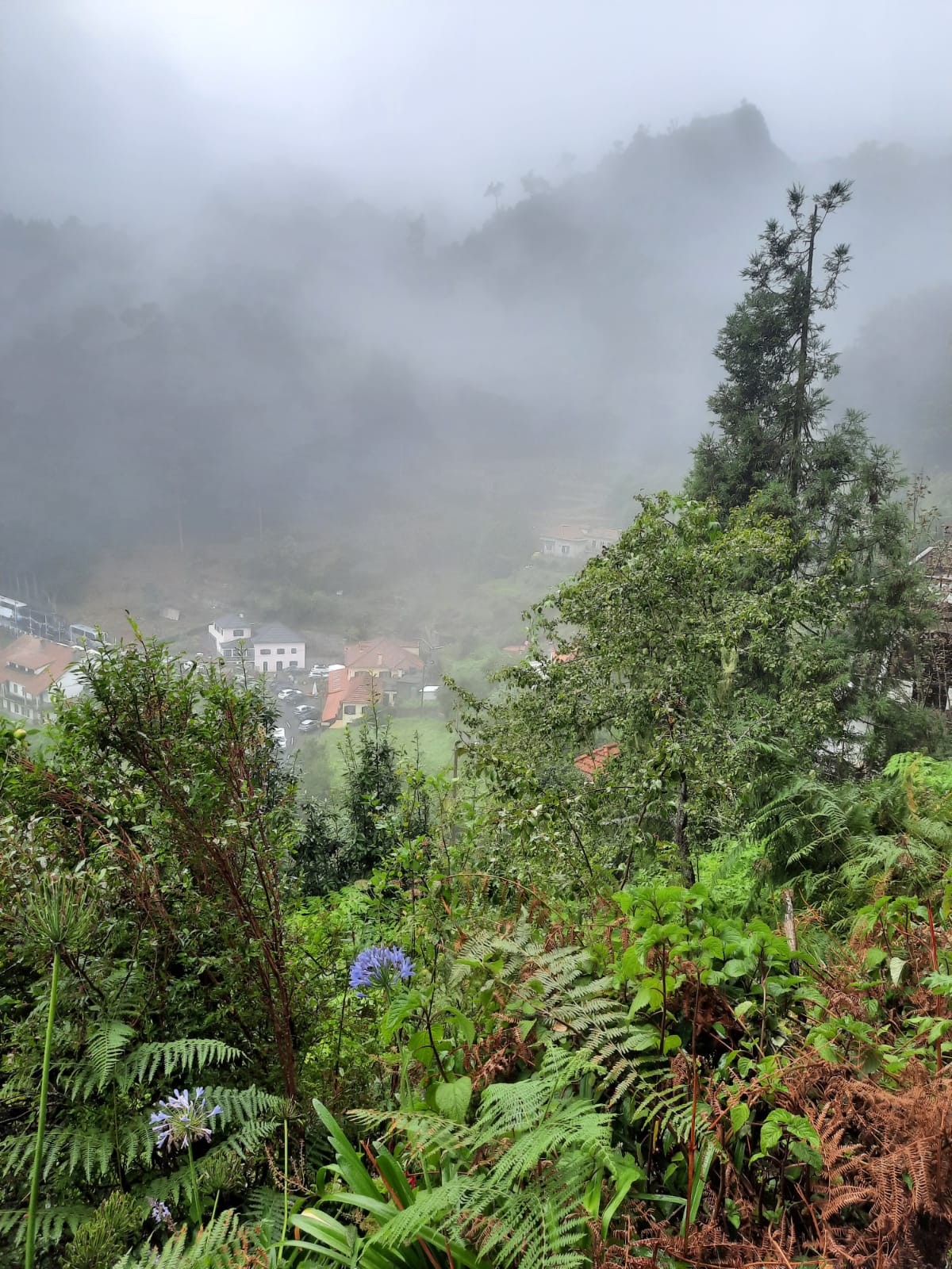 Départ pour le sommet de l’île Pico do Areiro (1810 m) pour une randonnée de 13 km. Les conditions climatiques défavorables nous imposent de changer de programme, il nous reste les cartes postales en vente au magasin de souvenirs. Après un bain de brouillard, nous nous dirigeons vers le parc naturel de Ribeiro Frio. Découverte d’une nouvelle chute d’eau, traversée de la forêt de lauriers, observation d’une plante endémique rare Musschia aurea. Déjeuner à Santana, célèbre pour ses maisons traditionnelles à toît de chaume. Arrêt à Porta da Cruz avant de terminer la journée par une visite de la pointe est de l’île, belvédère de Ponta do Rosto.
