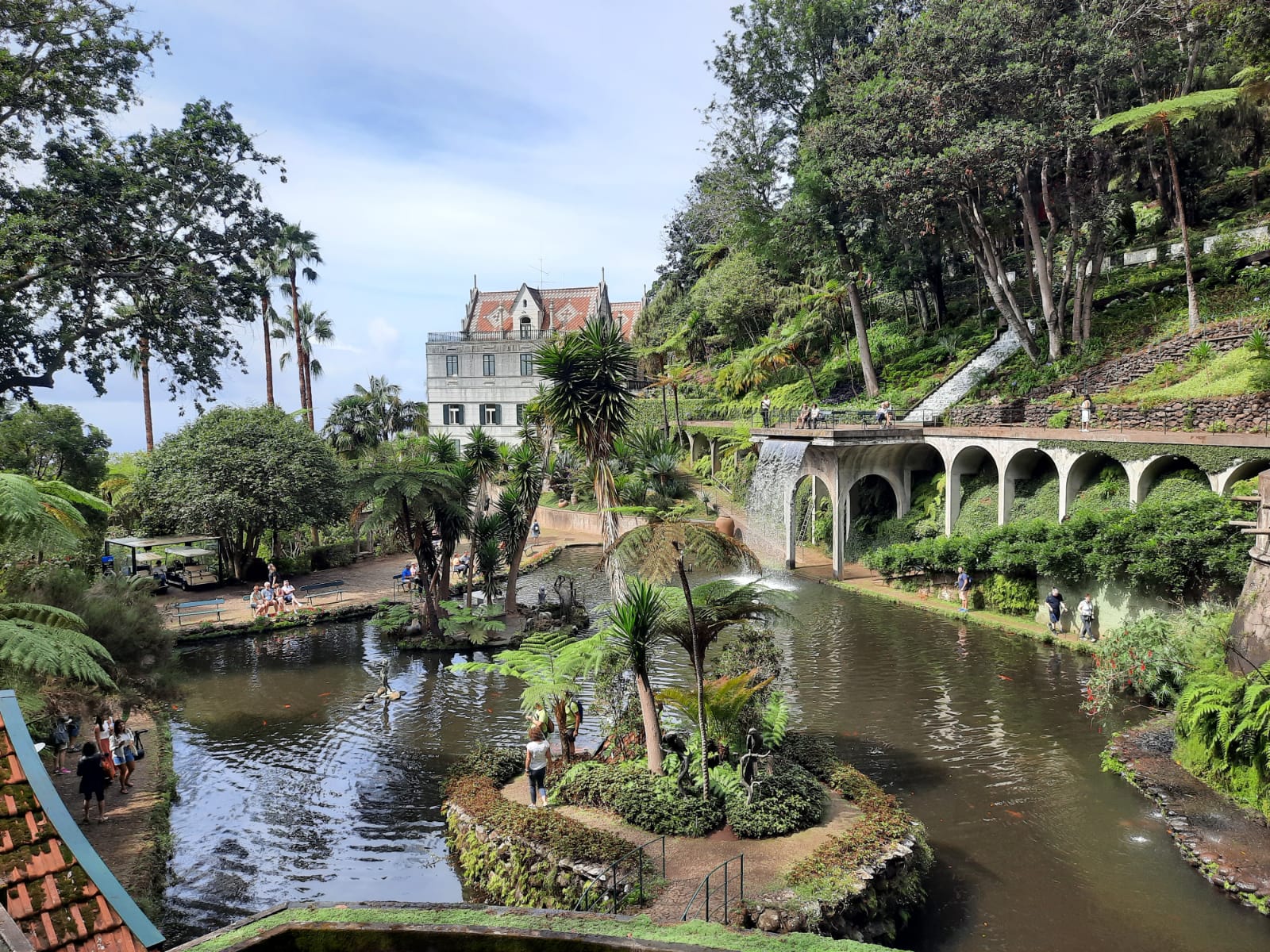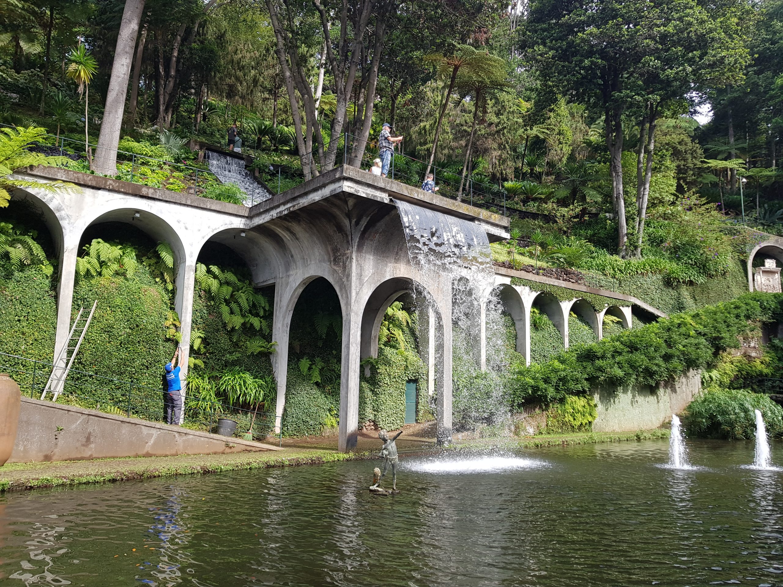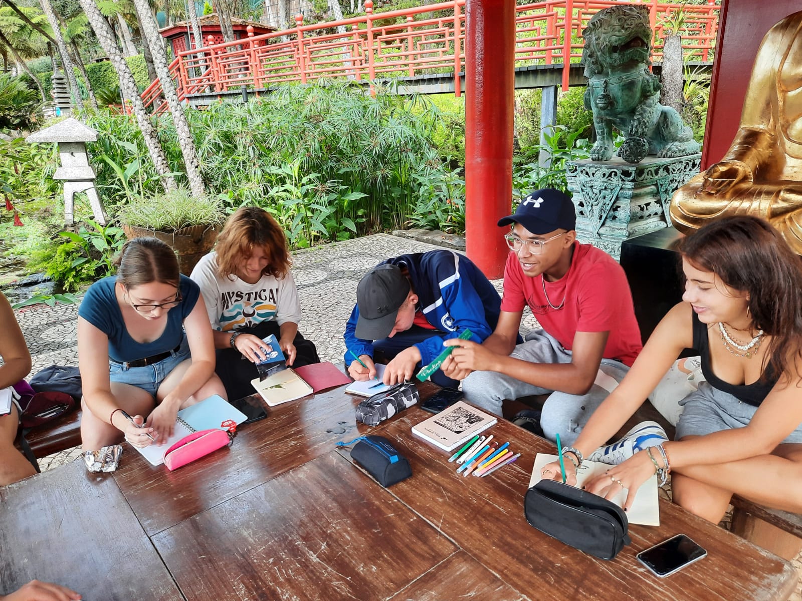 Départ de Funchal en téléphérique, arrivée à Monte pour la visite du célèbre jardin Monte Palace Tropical Garden. Ce jardin de 70 000 m² présente des collections de végétaux originaires du monde entier (Cycas, fougères arborescentes, agapanthes, plantes de terre acide, fuchsia, tibouchina). Seul le micro-climat exceptionnel de Madère permet de cultiver des plantes de zone tempérée comme des plantes de zone tropicale. Le jardin se déploie dans un vallon humide parcouru de ruisseaux, cascades et bassins enjambés par des ponts d’inspiration japonisante. Dans la partie inférieure du jardin se trouve l’ancienne demeure (Quinta) qui fut autrefois un hôtel réputé d’où l’on jouit d’une vue exceptionnelle sur Funchal et ses environs. Dans une ambiance calme et apaisante les étudiants ont pu s’adonner au dessin et enrichir leur carnet de voyage.